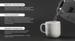Чайник выполнен в элегантном минималистичном стиле и подойдет почти к любому дизайну кухни. Однако есть у него и свой маленький секрет — красивая светодиодная подсветка не только приятно радует глаз, но и функциональна: света от чайника достаточно, чтобы не включать яркий свет на кухне ранним утром или когда уже темно.