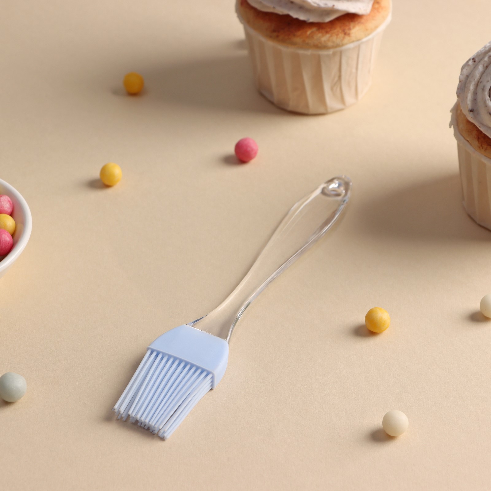 Кисточка силиконовая "Лёд" 17см., прозр.пластик. ручка Доляна 708025
