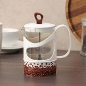 Чайник заварочный френч-пресс 0,66л. Арабика стекло/пластик, беж. с рис. Турция 9533385