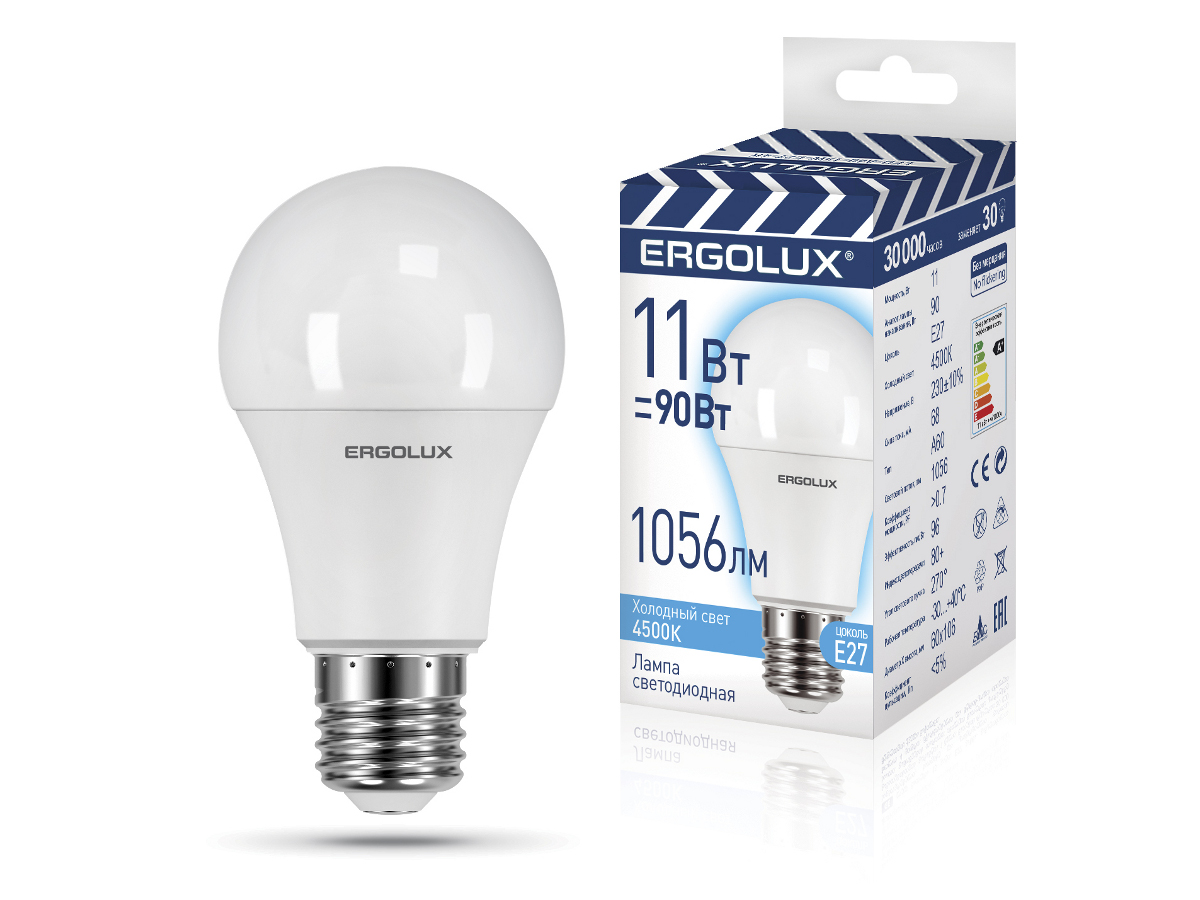 Лампа светодиодная Ergolux LED-A60-11W- E27 4000K груша