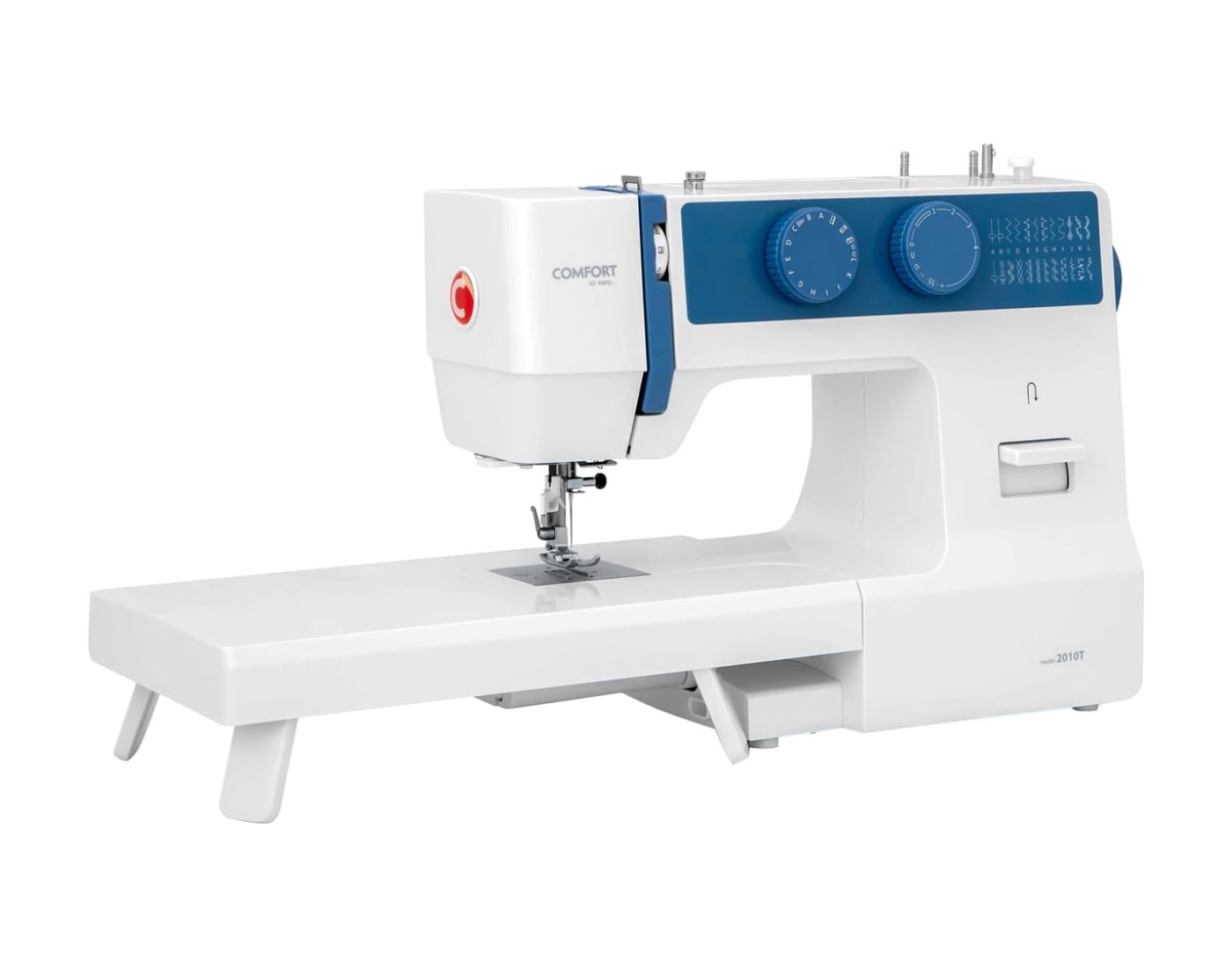 Мощность модели Comfort 2010T составляет 100 Вт. Большая мощность, наличие дополнительного столика, который помогает увеличить практически в два раза поле шитья, а также возможность регулировки длины строчек специальным регулятором, и наличие автоматической регулировки прижима ткани в зависимости от толщины материала, позволяет уверенно позиционировать новую модель в класс профессиональной швейной техники.
