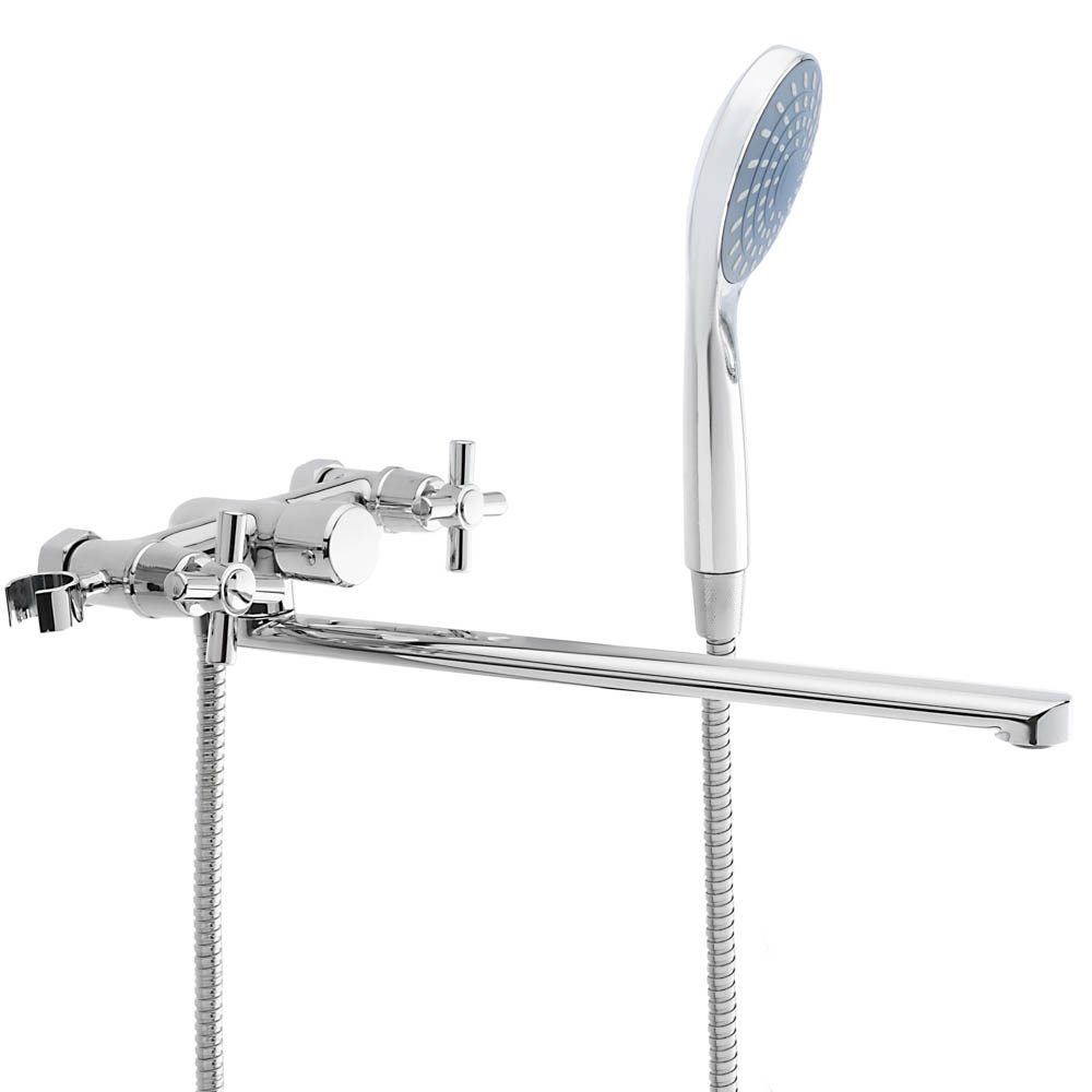 Смеситель для ванны с душем, прямой излив 35 см СОЮЗКРАН SK08-P208 подойдет для любителей классического типа регулировки воды. Привычное управление при помощи кран-буксы 1/2 позволяет быстро настроить нужную температуру и напор воды. Базовая душевая лейка работает в одном режиме стандартного напора и имеет пластиковые форсунки, которые легко промываются от отложений. Пользователя порадует современный дизайн и бесшумная работа.