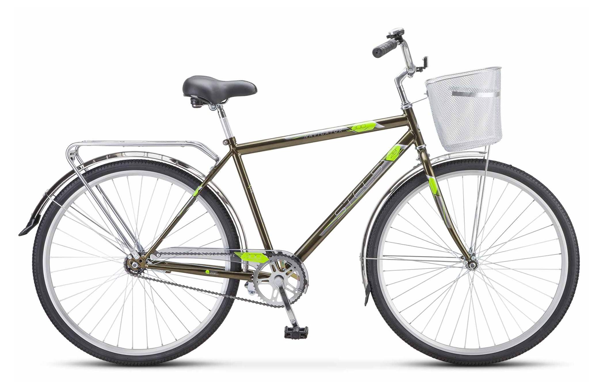Велосипед 28" STELS Navigator-300 C мужск.рама +корзина, рост 20", оливковый