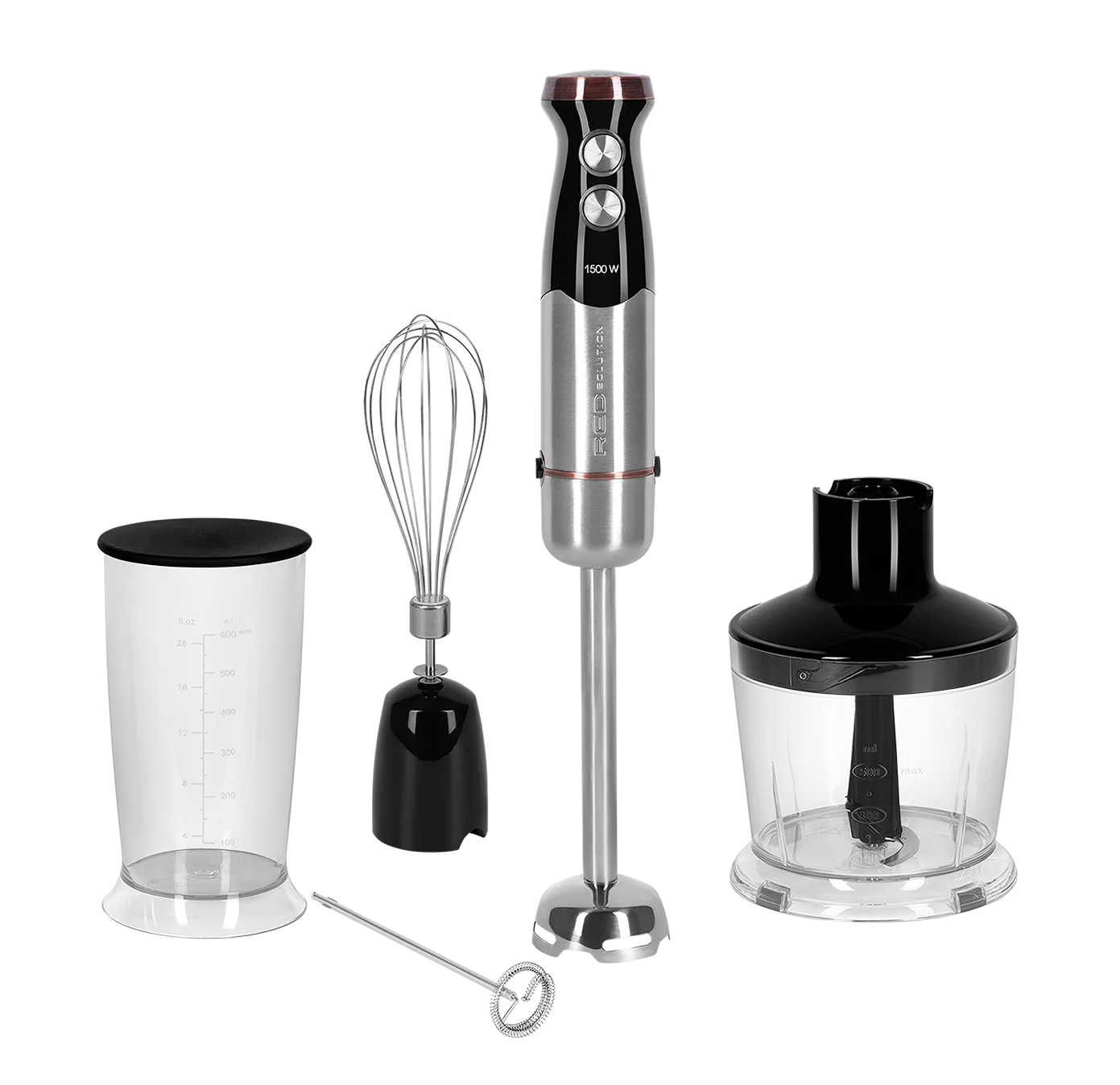 RED solution RHB-CB2986 – это многофункциональный блендер "4 в 1" с комплектом сменных насадок, способный заменить четыре полноценных кухонных устройства. Установив нужную насадку, вы сможете использовать прибор как погружной блендер, миксер, измельчитель или вспениватель молока.