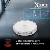 Чистота в каждом углуВыберите режим уборки в соответствии с задачей и вашими предпочтениями. Устройство предлагает режимы "Авто" для автоматической уборки везде, "Авто Экспресс" для быстрой уборки за 30 минут и "Вдоль стен" для сбора пыли вдоль плинтусов и в углах.