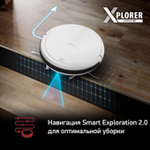 Навигация Smart Exploration 2.0 для оптимальной уборки3 ключевых элемента гарантируют безупречную навигацию и безопасность робота-пылесоса: инфракрасные сенсоры, бампер и датчики высоты предотвращают столкновение устройства с мебелью и стенами и падение его с лестницы.
