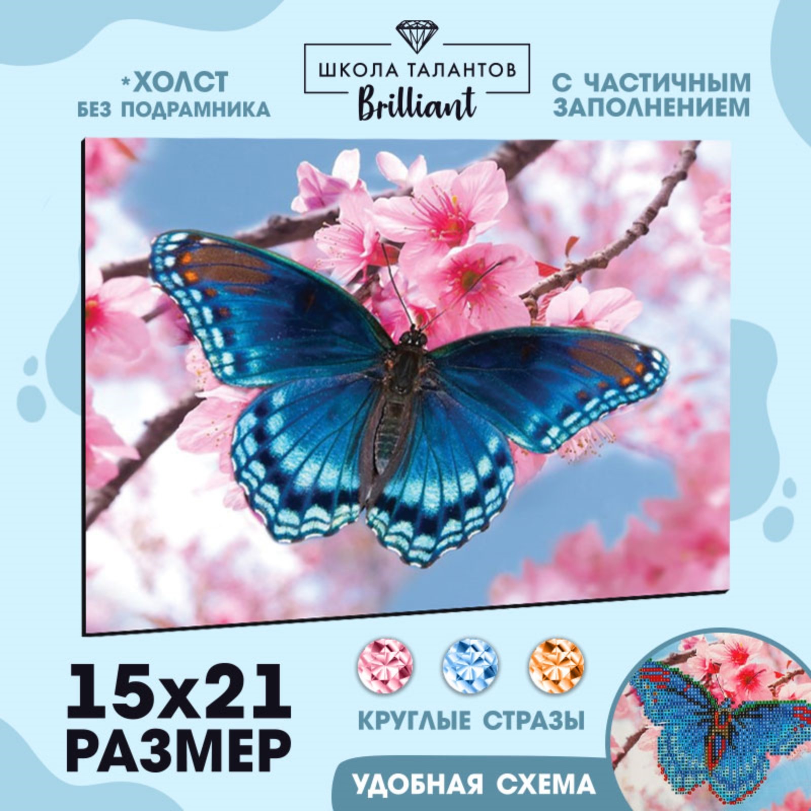 *Алмазная вышивка с частичн. заполн. "Бабочка" 15*21см., холст 5299771