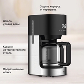 Стеклянный кувшин имеет объем 1,5 л – этого хватит на большое количество чашек кофе для вас и ваших друзей.