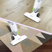 Благодаря манёвренной универсальной щётке вы можете убираться на плоских напольных покрытиях, таких как линолеум, паркет, ламинат, а также на ковровых покрытиях.