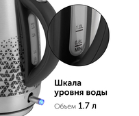 RED solution RK-M177 - электрический чайник мощностью 2100 Вт и объемом 1,7 л. Прибор имеет удобное окошко с мерной шкалой, что наглядно показывает наполнение чайника. Чайник выполнен их надежных комплектующих.