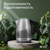 Сетчатый фильтр на носике чайника улавливает малейшие частицы накипи. Сетка легко снимается - для обслуживания фильтр достаточно промыть под проточный водой. Фирменная контактная группа Strix гарантирует безопасность и долговечность работы устройства - если чайник пустой, нагрев остановится автоматически. Корпус чайника выполнен из нержавеющей стали AISI 304.