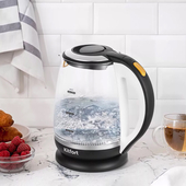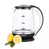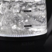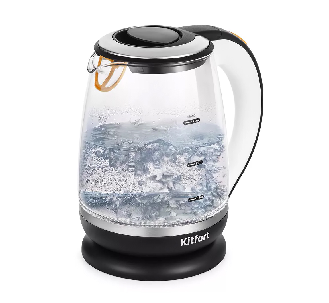 Электрический чайник Kitfort KT-6199 предназначен для быстрого кипячения воды дома, в офисе или на даче. Этот мощный чайник большой ёмкости представляет собой идеальное сочетание стекла, пластика и нержавеющей стали. Нагревательный элемент этого чайника спрятан под металлической пластиной из нержавеющей стали. Это облегчает его очистку и значительно снижает шум при кипячении воды. На внешней стороне чайника расположена мерная шкала, рассчитанная на объем до 2 л.