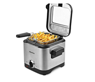 Фритюрница Blackton Bt DF1110 имеет объем чаши 1,5 л, регулируемый термостат, мощность 900Вт.