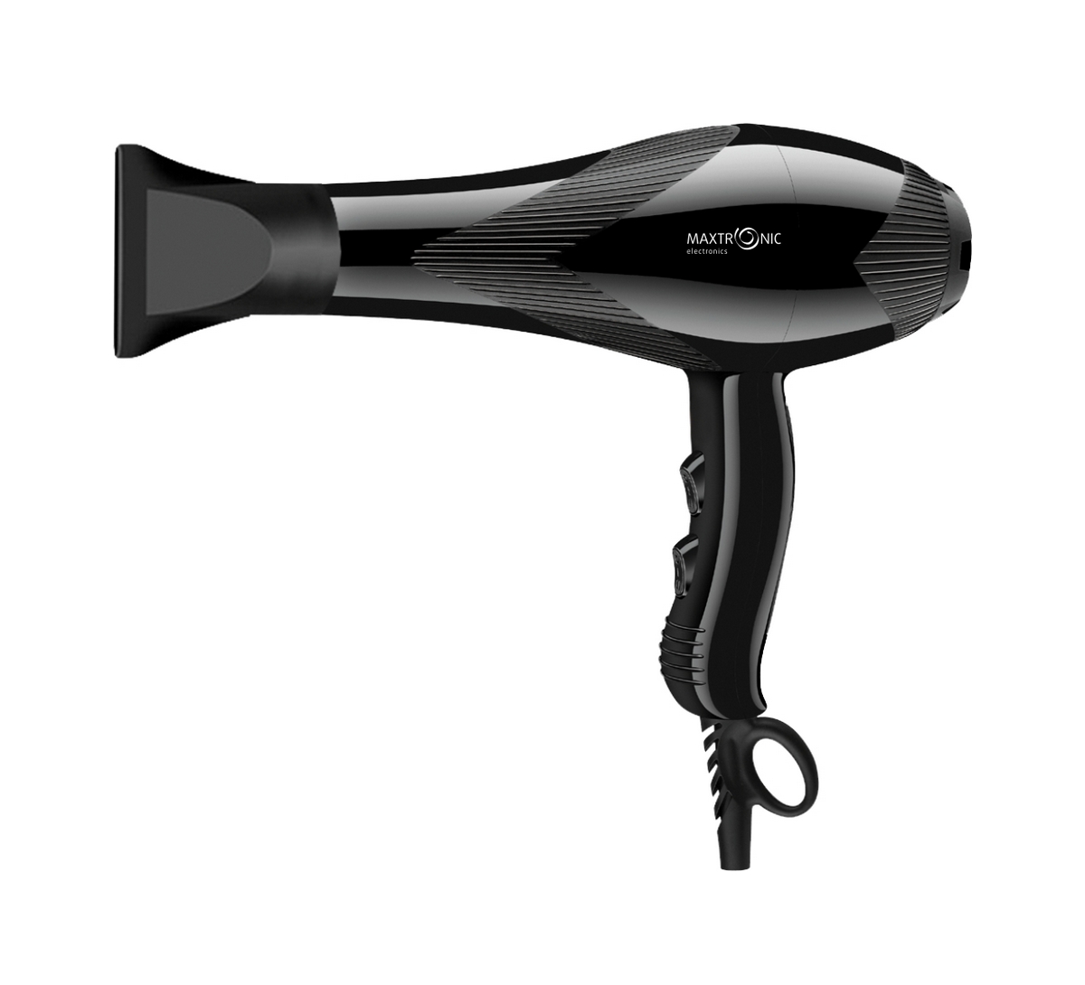 Фен Maxtronic MAX-D8997 отличает мощность 2200 Вт. В нем есть всё, что нужно, чтобы бережно высушить волосы и создать объемную укладку: два режима регулировки скорости воздушного потока и насадка-концентратор.