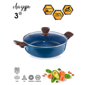 Сотейник d24 WINNER WR-1394 Лазурь 3л., внутри мраморн.покр., стекл.кр., две ручки