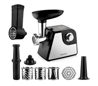 В комплект входят насадки для приготовления различных блюд. Вы сможете приготовить фарш для котлет, тефтель, голубцов, измельчить мясо для начинки в чебуреки, беляши, пельмени, натереть или нашинковать овощи. А насадка "Кэббе" позволит приготовить ароматные колбаски.