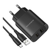 СЗУ 2100mAh Borofone 2USB + micro USB BN2 Black 1м
