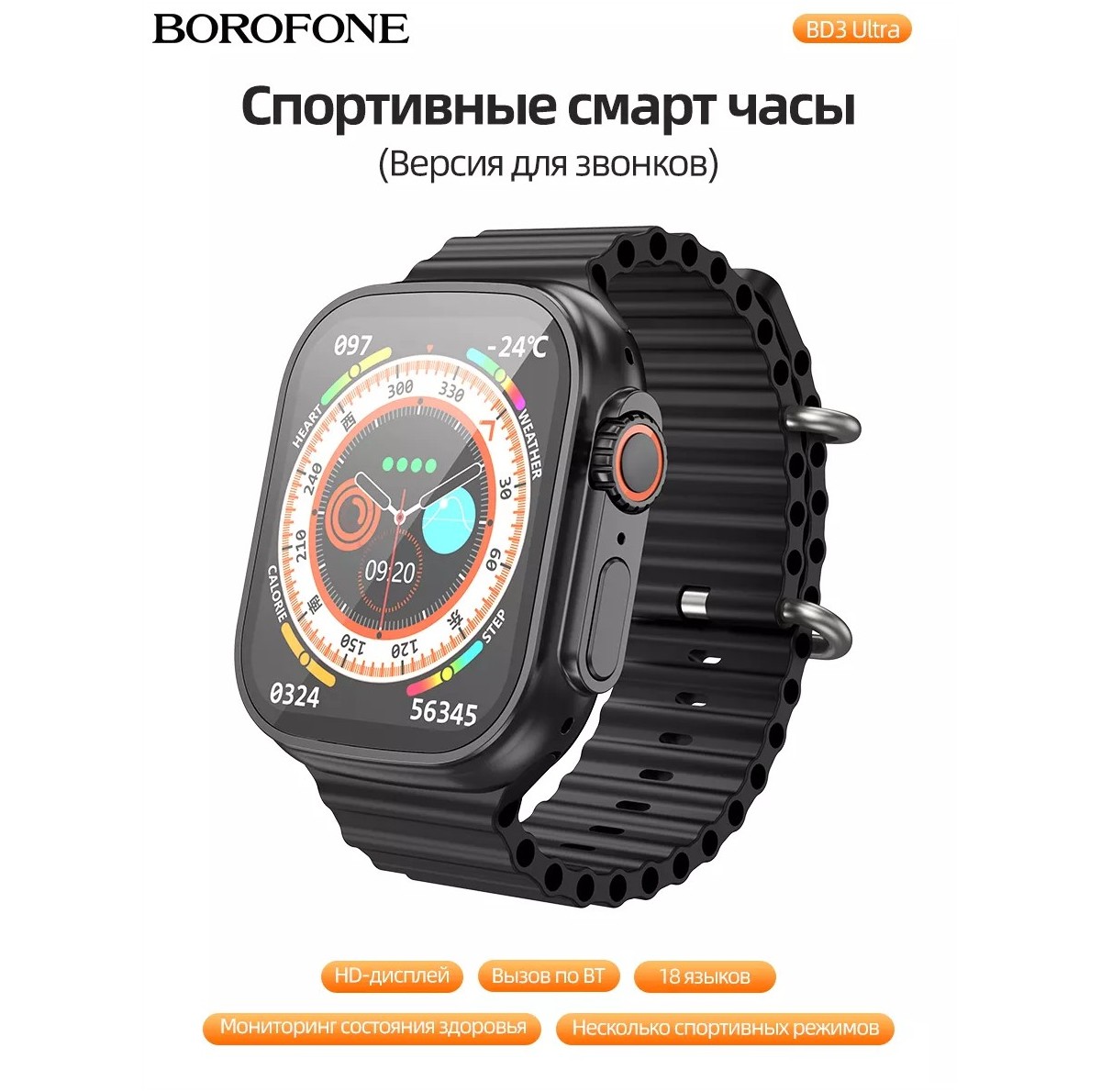 Смарт-часы Borofone BD3 Ultra – стильный, модный, и нужный аксессуар для людей. Часы, отлично подходят для людей ведущих здоровый и активный образ жизни. Электронные умные часы, имеют металический корпус и удобный силиконовый ремешок, крупный циферблат.
