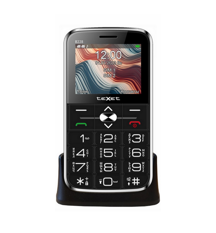 Флагманский кнопочный телефон для пожилых texet TM-B228 выделяется на фоне остальных моделей в линейке, своим широкоформатным экраном 2,44 дюйма, и не имеет прямых аналогов на рынке среди конкурентов.