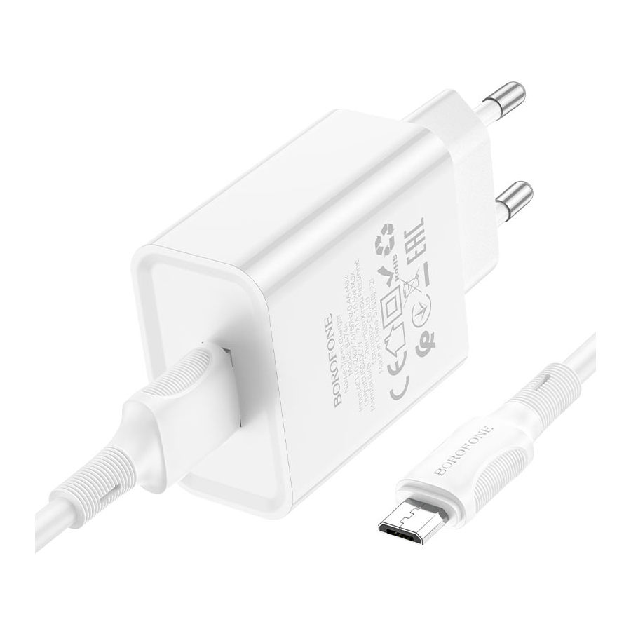 СЗУ 2100mAh Borofone 1USB + micro USB White BA74A