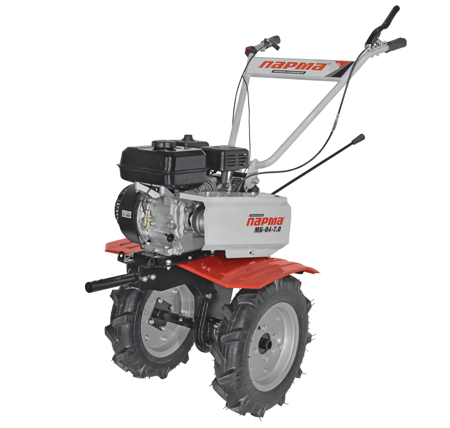 Мотоблок Парма МБ-04-7,0 7л.с., кол.4"*10, регулир.руль, передачи 2/1, фрезы, усил.рама