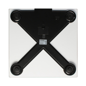 Нижняя часть платформы состоит из крестообразной пластиковой основы, на которой расположены 4 высокоточных датчика, реагирующих на нагрузку, оказываемую на платформу, а также 4 прорезиненных ножки, не позволяющие весам ерзать по полу и царапать поверхность. В этой же части весов находится и батарейный отсек, в который устанавливается батарейка типоразмера питанияCR2032, проще говоря – таблетка. Всего потребуется всего 1 элемент питания для правильной и бесперебойной работы устройства.