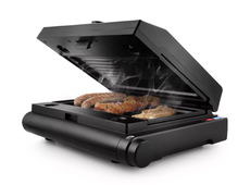 Благодаря электронному управлению гриль поддерживает температуру рабочих поверхностей в заданном температурном диапазоне. Выбор температурного режима осуществляется вращением регулятора и отображается в окне индикатора температурного режима.