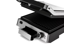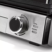 Гриль оснащен термостатом с плавной регулировкой, позволяющим выставить температуру вплоть до 230 °С.