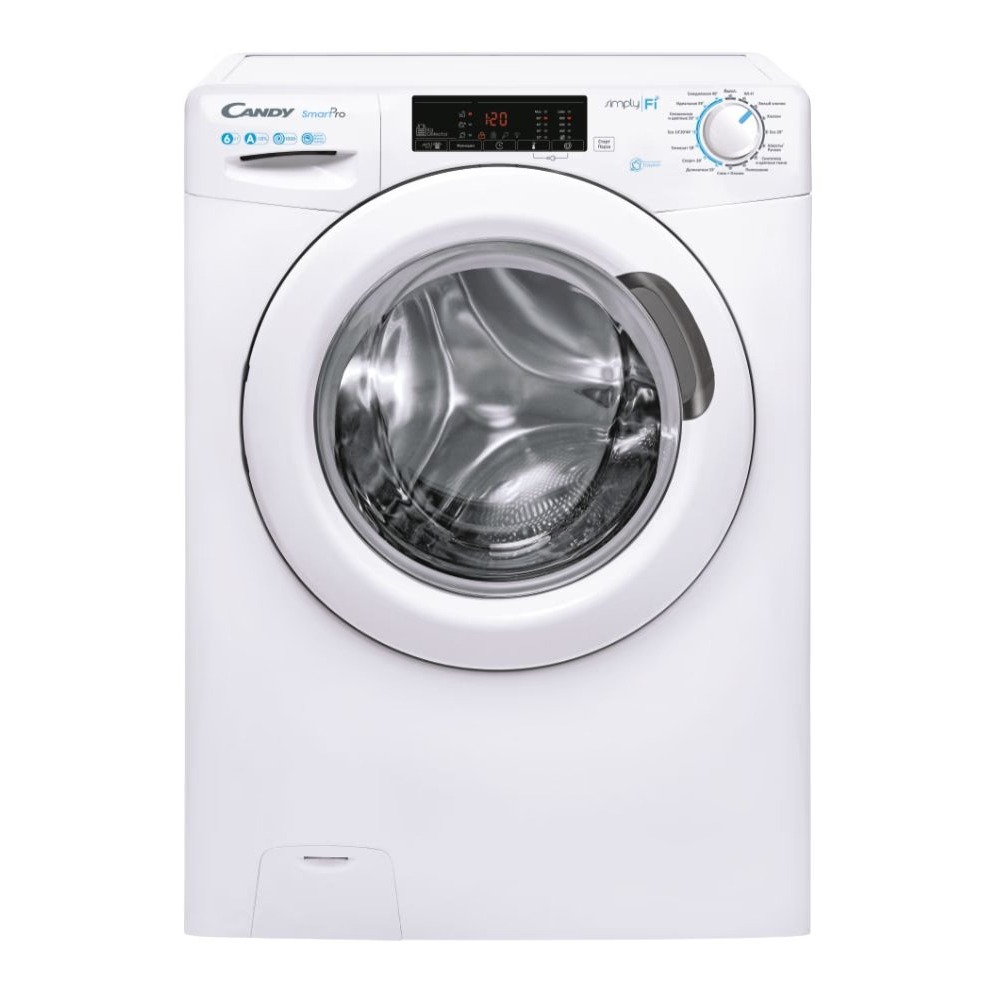 Стиральная машина Candy CSO4 106T1/2-07 обладает фронтальной загрузкой и способна вместить до 6 кг белья за один цикл работы, класс эффективности стирки данной модели A.