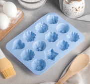 Форма для выпечки силикон 630814 кексы Цветочное ассорти 12шт. 16*21*2,5см.