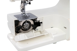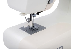 Потрясающий дизайн и удивительно удачное его цветовое решение позволят помимо рабочих качеств получать эстетическое удовольствие. Модель выполнена в нежном молочном цвете с отделкой под матовую сталь. Маховое колесо и переключатели имеют зеленые прорезиненные компоненты.