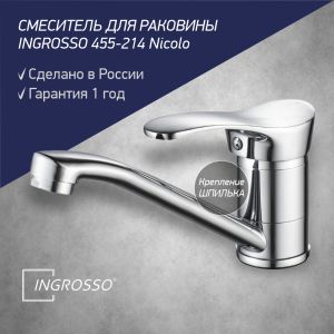 Смеситель д/раковины INGROSSO V455-214 гусак16 см,картиридж 35мм, шпилька