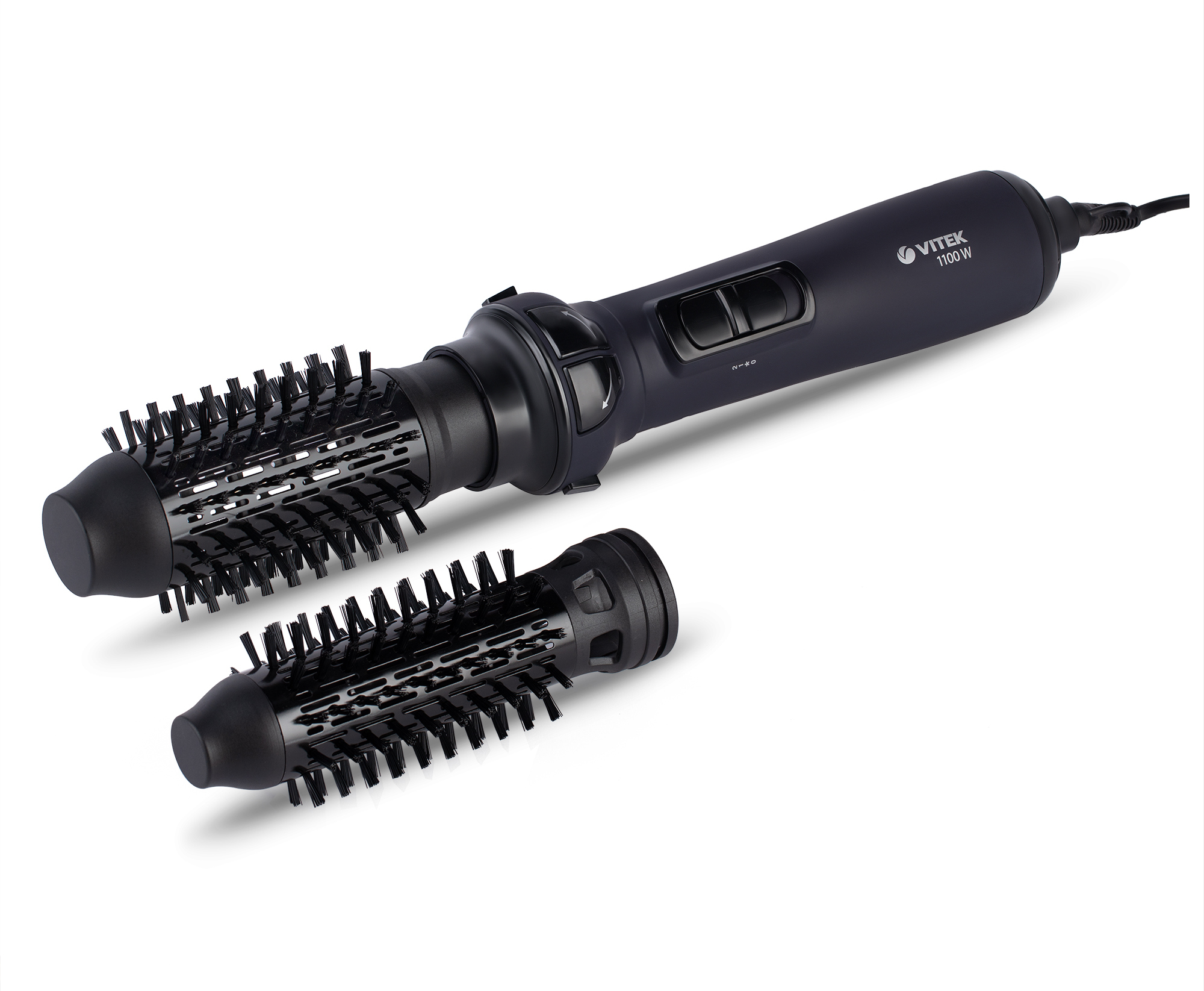 Не только высушить волосы после мытья, но и уложить их в прическу, поможет фен-щётка Vitek VT-8249 с тремя температурными режимами и тремя скоростями воздушного потока. Максимальная мощность устройства — 1100 Вт.