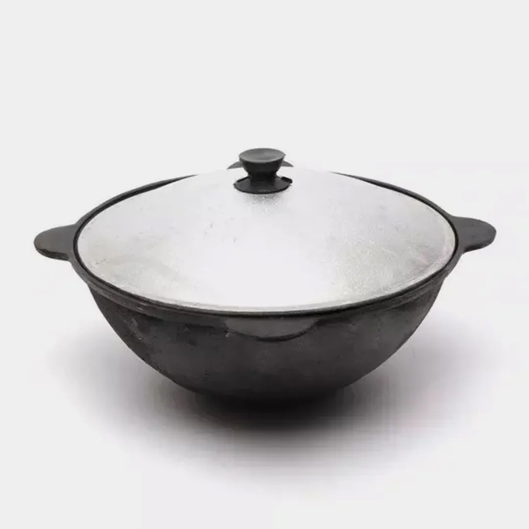 Казан чугунный 6л. Добрыня 6403 плоское дно, алюм.крыш.