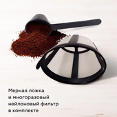 В комплектацию устройства входит съемный нейлоновый фильтр многоразового использования, а также 2 чашки. Важным аспектом кофеварки является защита от перегрева, которая обеспечивает безопасность при использовании устройства и продлит срок его эксплуатации. С этой капельной кофеваркой вы сможете насладиться чашечкой ароматного кофе в любое время.