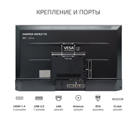Harper 40F821TS – это сбалансированное решение для небольших помещений со всеми современными функциями. Безрамочный дизайн экрана с разрешением 1920х1080 точек имеет хорошие углы обзора и контраст, поэтому отлично смотрится с любой точки помещения. Вы получаете доступ к любому типу контента: можете просматривать файлы, записанные на съёмные носители, цифровое или кабельное ТВ. С помощью функции Smart Lite вы можете просматривать он-лайн контент (уcтановленные приложения - Youtube и IVI).