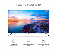 Цифровой LED-телевизор Harper 43F661TS – это сбалансированное решение для небольших помещений со всеми современными функциями. Безрамочный дизайн экрана с разрешением 1920x1080 точек имеет хорошие углы обзора и контраст, поэтому отлично смотрится с любой точки помещения. Вы получаете доступ к любому типу контента: можете просматривать файлы, записанные на съёмные носители, цифровое или кабельное ТВ.