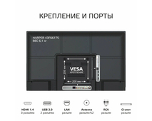 С помощью функции Smart TV вы можете просматривать он-лайн контент (уcтановленные приложения - Youtube и IVI). Подключение к сети по Wi-Fi или "проводу" (LAN).