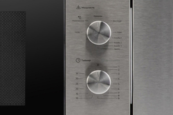Микроволновая печь имеет классическое управление двумя регуляторами. Один отвечает за выбор мощности и режима работы, а другой за установку таймера. Максимальный интервал времени - 35 минут, этого достаточно для разморозки большого куска мяса или его приготовления.