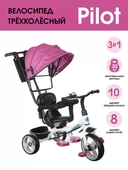 Велосипед 3-х кол. Pilot PT1V крыша-капюшон, родит.вело-ручка, фиолетов.