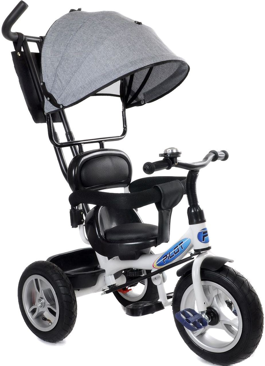 Велосипед 3-х кол. Pilot PT1GR крыша-капюшон, родит.вело-ручка, серый