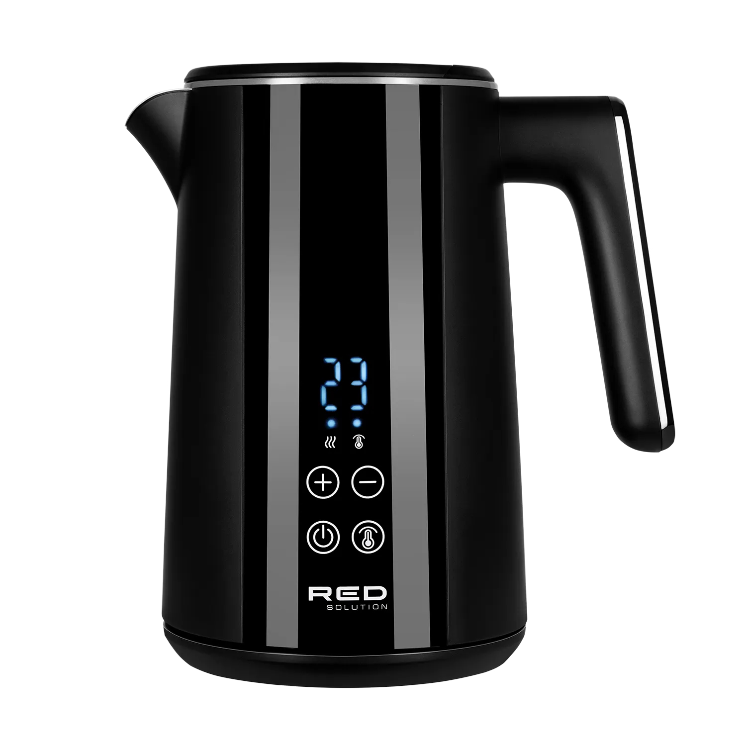RED solution RK-M111D — стильный современный чайник с гибкой настройкой температуры и функцией автоподогрева. Двухслойный корпус работает как термос, замедляя остывание воды, а умная панель управления делает использование простым и приятным.