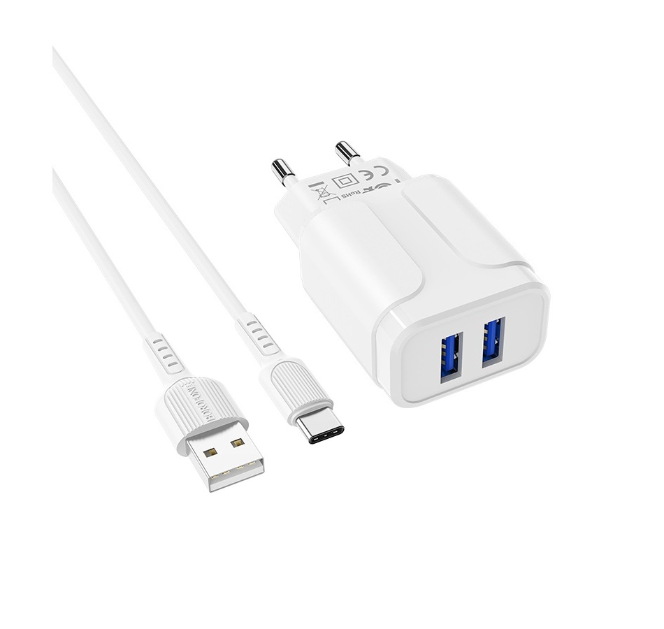 СЗУ 2400mAh Borofone 2USB + Type-C BA37A white