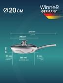 Сковорода d20 WINNER WR-6006 + крышка, кован.алюм., мрамор.покр., д/индукции
