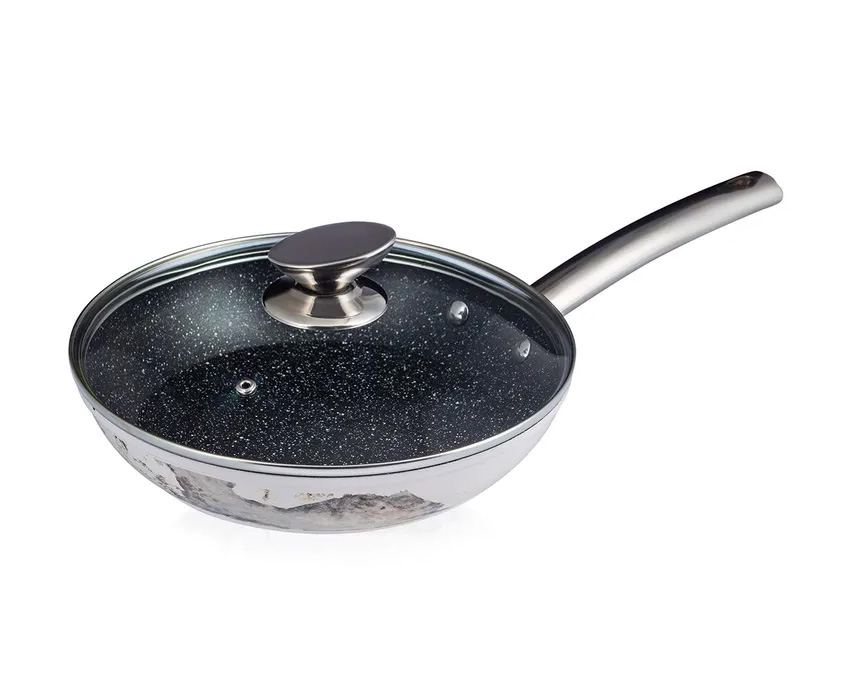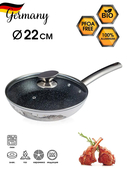 Сковорода WINNER WR-6007 Antique grey с антипригарным мраморным покрытием и крышкой имеет диаметр 22см. Благодаря диаметру сковородку удобно хранить и мыть, использовать для приготовления завтраков: жарки яиц, омлета, оладий, сырников. Сковорода не даст продуктам подгореть. При этом в сковороде можно готовить с минимальным количеством масла. Антипригарное покрытие не содержит PFOA. Сковородку можно мыть в посудомоечной машине.