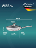 Сковорода d22 WINNER WR-6007 + крышка, кован.алюм., мрамор.покр., д/индукции