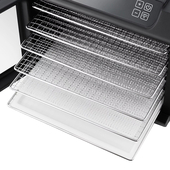 6 пластиковых поддонов, 6 поддонов с бортиками для пастилы и 6 сеток помогут разместить внутри сушилки абсолютно любые продукты!