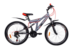 Характеристики Велосипед 24" YUTA Mercury двухподвес, рама 15", 21ск., т.серый/чёрный/красный
