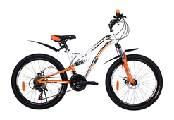 Велосипед 24" YUTA Loki двухподвес, рост 14", 21ск., диск.торм., белый/оранжевый/чёрный