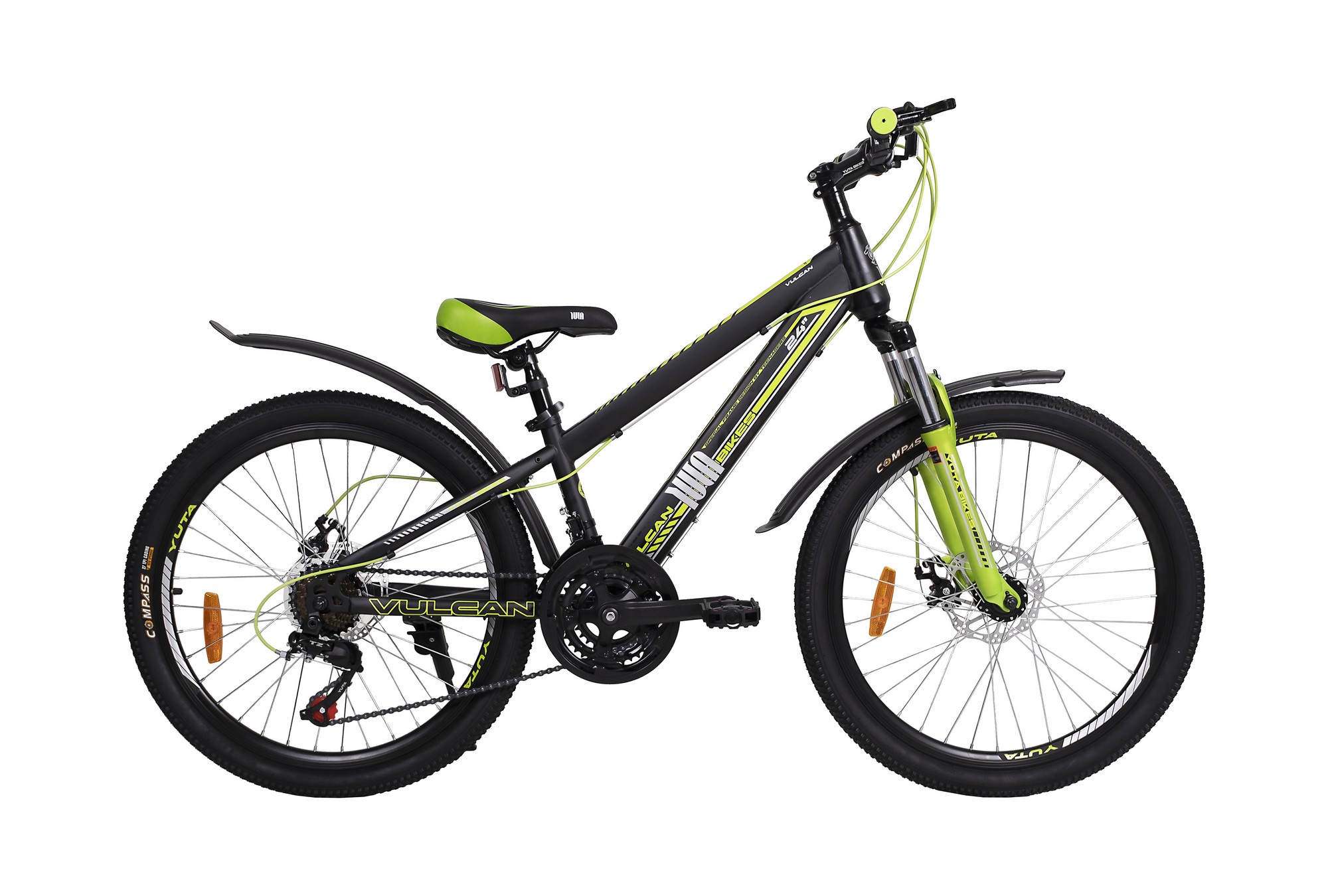 Велосипед 24" YUTA Vulcan рост 12", 21ск., чёрный/зелёный/серый
